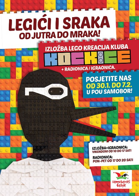 Dragi prijatelji, pozivamo vas da se od 30.1. do 7.2. družite s nama u Samoboru povodom samoborskog fašnika. Za vas smo pripremili malu izložbu LEGO kreacija i dobru zabavu uz LEGO igraonicu. Vikendom smo otvoreni od 10 do 17 sati, a od ponedjeljka do petka će biti održavane radionice od 17 do 20 sati. Dođite